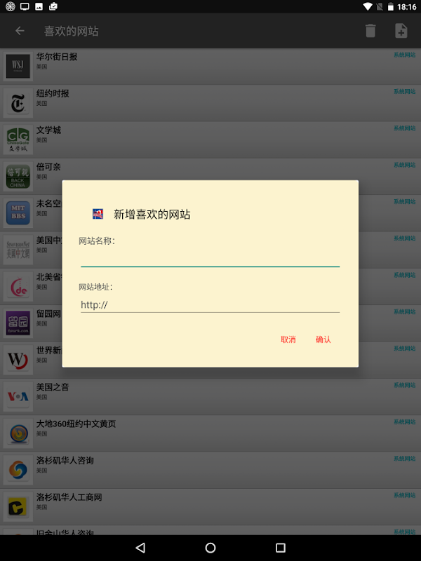 包括主要的美国中文网和加拿大中文网和双方大使官网址,以及可以设置自己喜欢的网址。Chinese in USA & Chinese in Canada