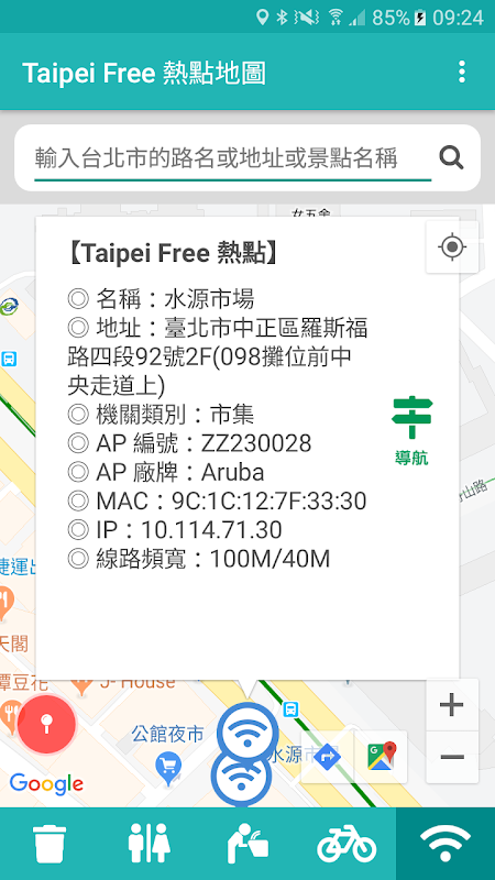 4. 臺北公眾區免費無線上網(Taipei Free)熱點位置。