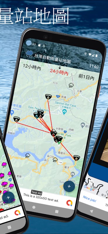 Bietet Niederschlagsinformationskarten der automatischen Niederschlagsstationen Taiwans sowie Echtzeitbilder der nächstgelegenen Niederschlagsstationen im Umkreis von sieben Kilometern (bis zu zehn, falls vorhanden).