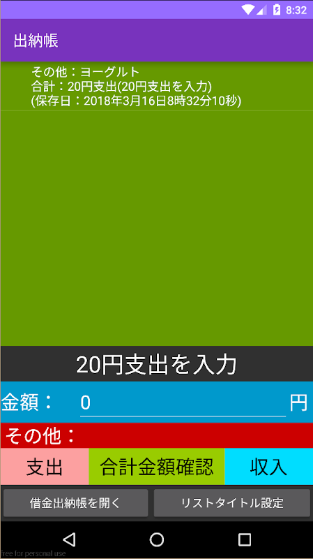 合計金額の計算、お金の出費の記録も1つのアプリで可能!「出納帳」アプリ 1.0