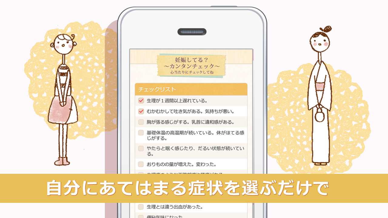 このアプリは医師の診察に代わるものではありません。最終的には自分で判断せず、必ず妊娠検査薬でチェックしたり、医師の診断を受けるようにしてください。