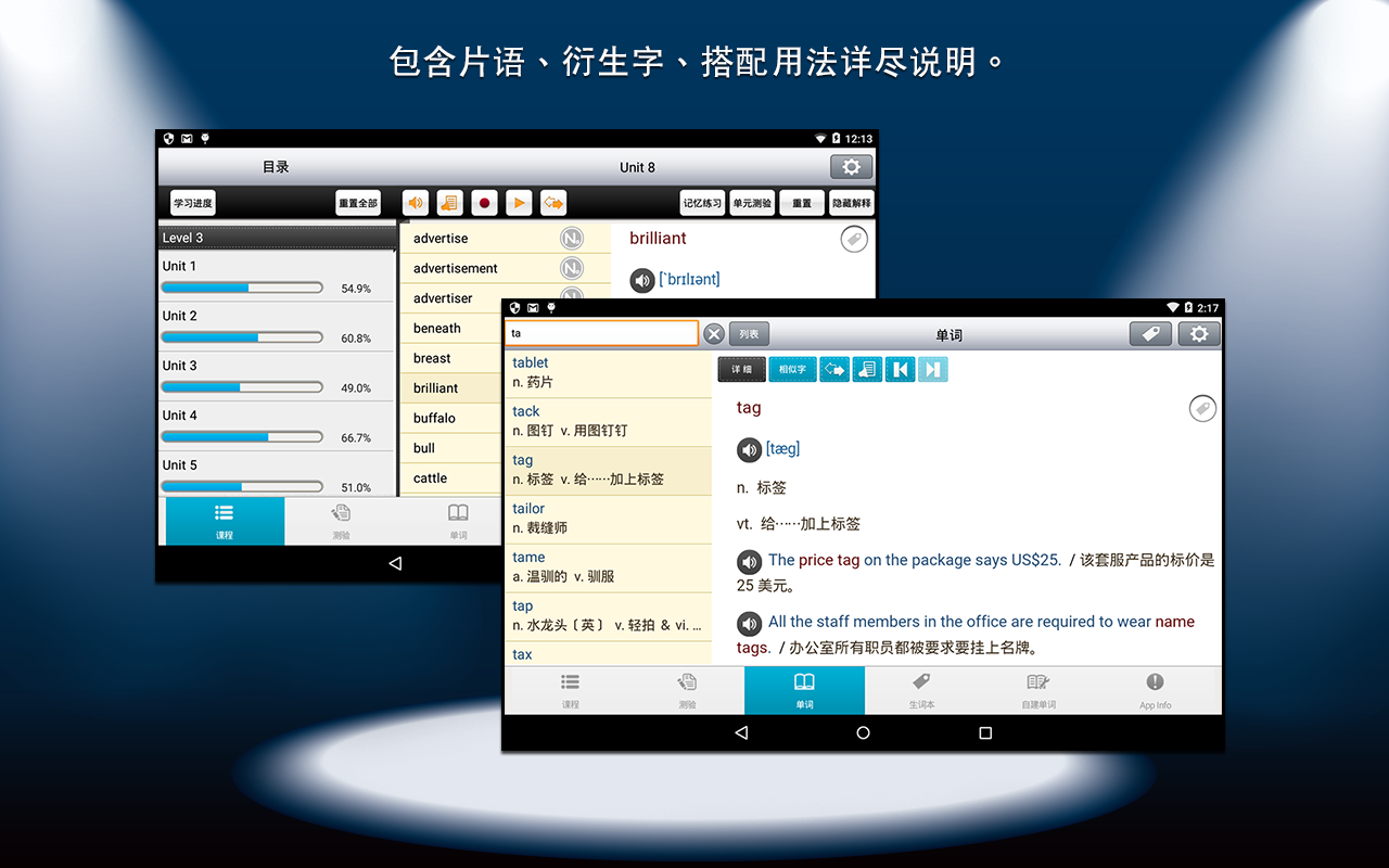 * 可将要加强的单词放入生词本,再特别加强记忆和练习。