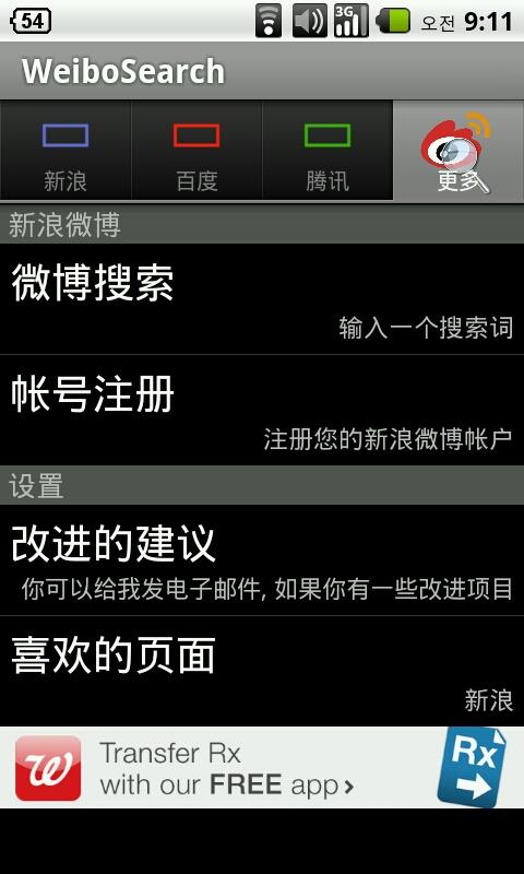 "微博搜索"是一个应用搜索各个新浪微博实时热的关键字词组的基础上的。