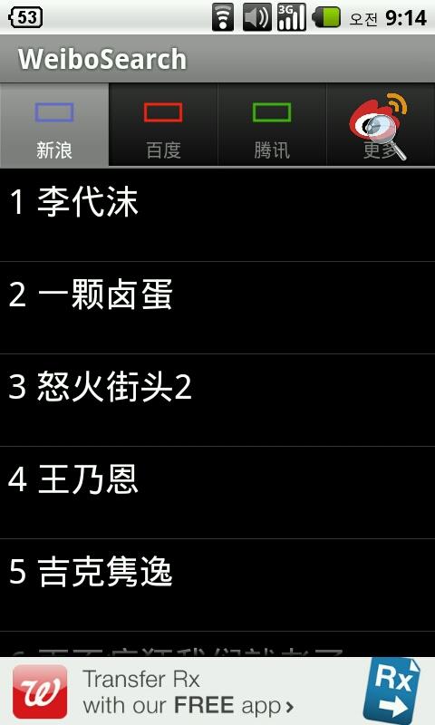 按照一个热门的趋势,使用的"微博搜索"的。