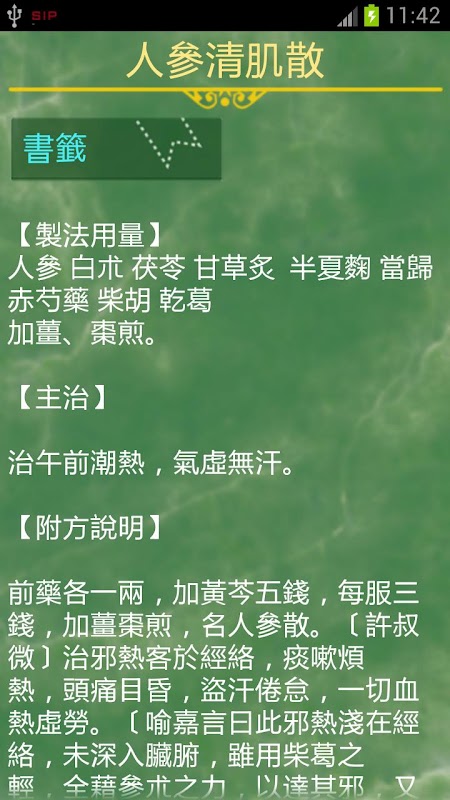 4. 提供書籤功能,可將收藏的方劑顯示在最前面,以便使用者查閱