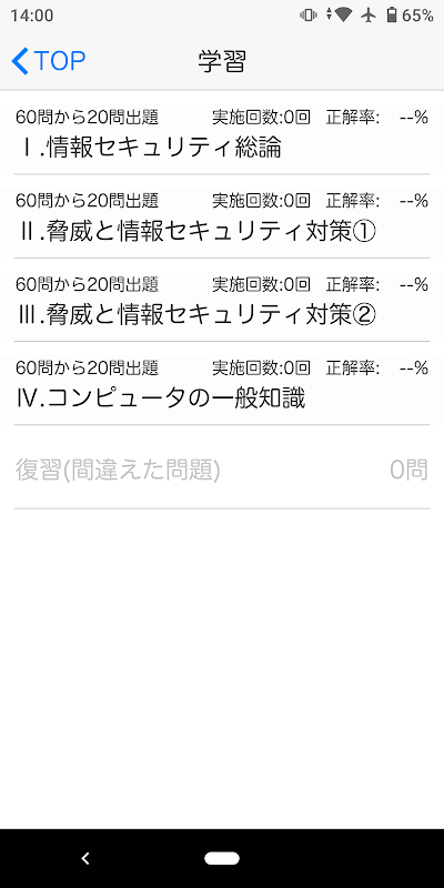 「情報セキュリティ総論 20問」を無料体験していただき、残りはアプリ内からご購入いただけます。
