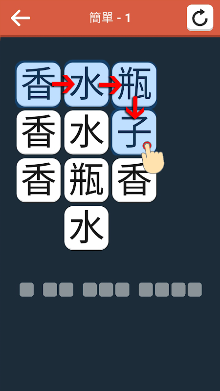 這是一款新穎的益智文字遊戲。您需要在重複的漢字中尋找和拼字。