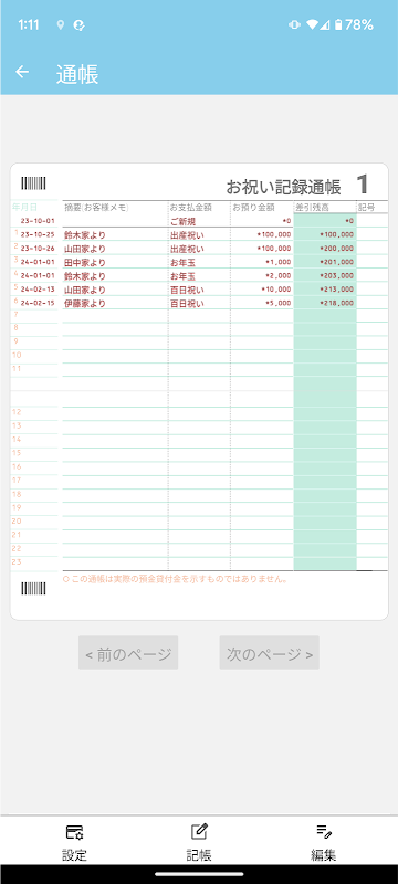 Sie können für Oshikatsu gespartes Geld, für Oshikatsu ausgegebenes Geld, bei Feierlichkeiten erhaltenes Geld usw. in einer Sparbuch-ähnlichen Darstellung erfassen.