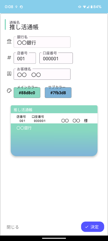 Eine Notizblock-App, mit der Sie das für Oshikatsu ausgegebene Geld und das bei Feierlichkeiten erhaltene Geld mit einem Sparbuch-ähnlichen Erscheinungsbild verwalten können.