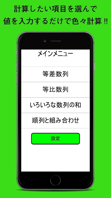 「数列・順列・組み合わせ計算機」はいろいろな数列、順列、組み合わせの計算を行う計算機です。普通の電卓としての機能はありません。簡単に等差数列の和などを計算することができます。わざわざ公式に値を入れながら計算するのが面倒、なんてときに便利な計算機です。アプリ内では一部ではありますが、公式も載せています。