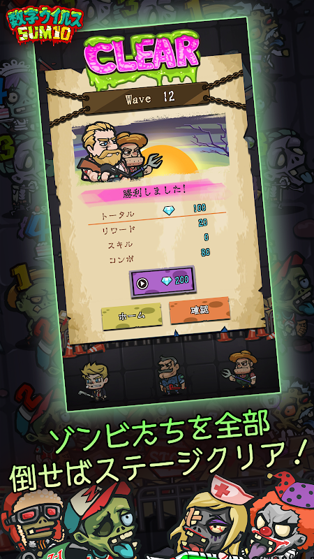 ·複数のゾンビをタップして合計を10にすると、選んだゾンビたちは消滅します。