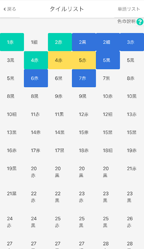 Wir haben eine Kachelliste vorbereitet, die sich nach den Wörtern färbt, die Sie sich merken. Wenn alle Kacheln grün sind. . .