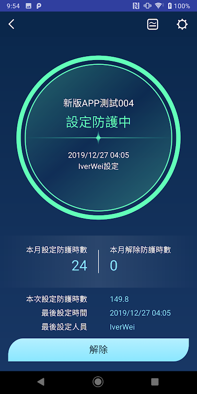 4. 系統即時狀態顯示(設定或解除中/操作者/時間)