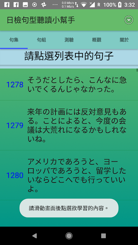 透過獨創的分句技術,以及語音合成和語音辨識功能,讓想學好日語的學習者,循序漸進學習日文句子的聽與說。並且深入了解句子中與日文檢定相關的用法。