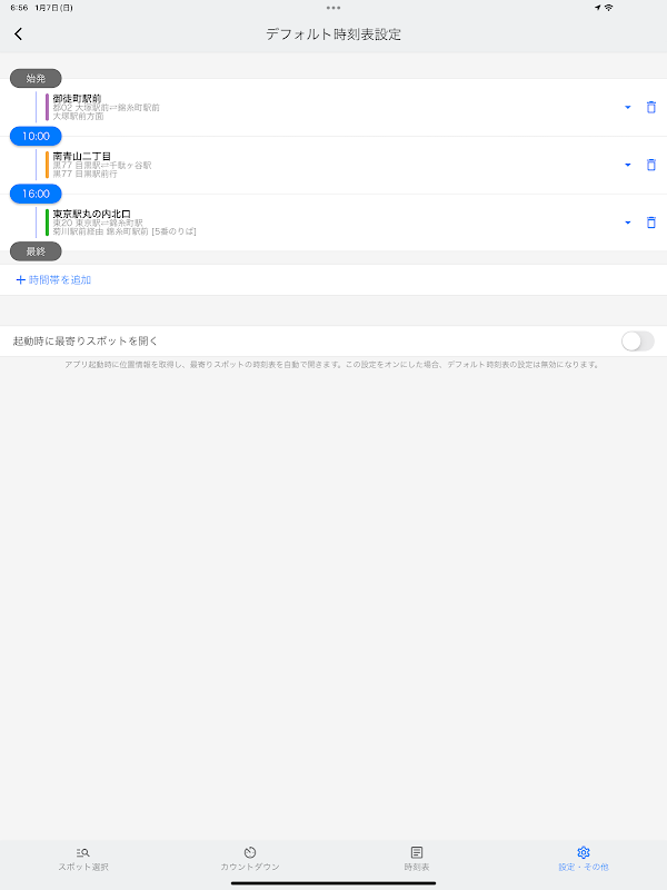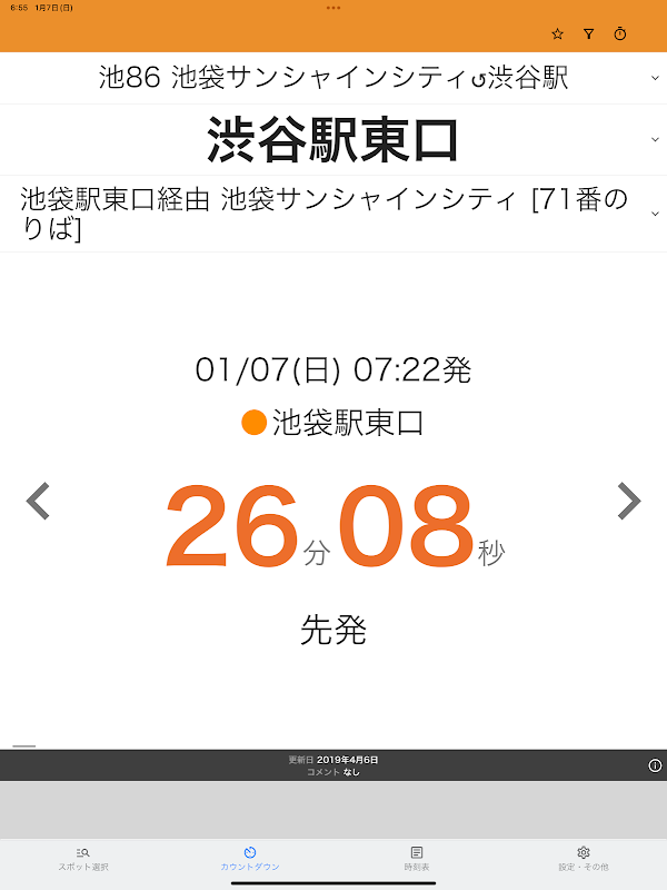 ・カウントダウン画面に表示されている日付をタップすると、カウントダウンする時刻表の曜日を変更できるようになりました。お盆期間中などダイヤが普段と違う場合にご利用いただけます。