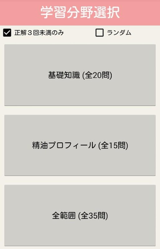 アロマテラピー検定試験用に四択で電車の中でも手軽に学習できるアプリを作成しました。