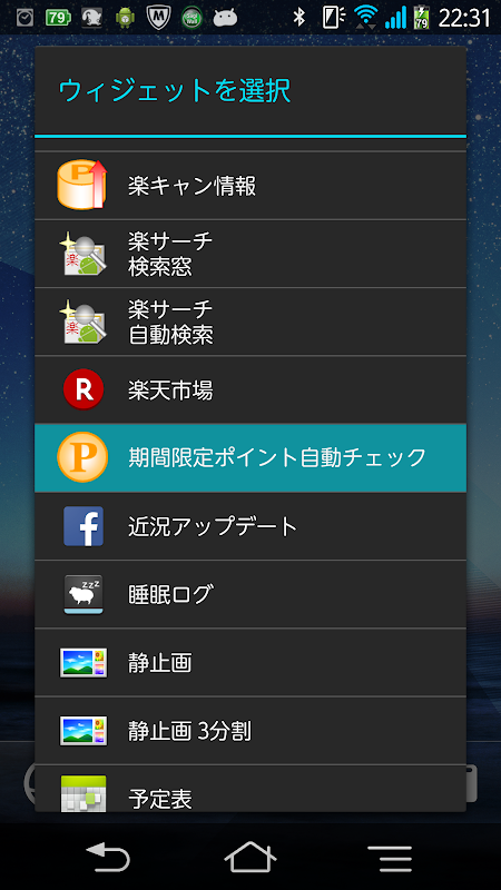Durch die Anzeige dieses Widgets auf dem Startbildschirm werden Rakuten-Punkteinformationen angezeigt. Diese App hilft Ihnen, zeitlich begrenzte Punkte nicht zu vergessen.