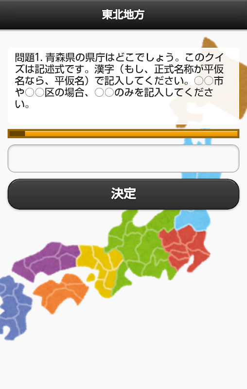 日本の県庁所在地についての記述式クイズです。このクイズ、正確に答えないと正解になりません。少し難しい反面、繰り返すことで正確に覚えることができます。
