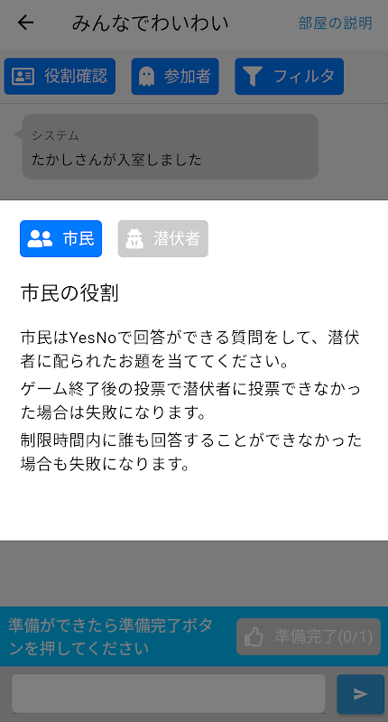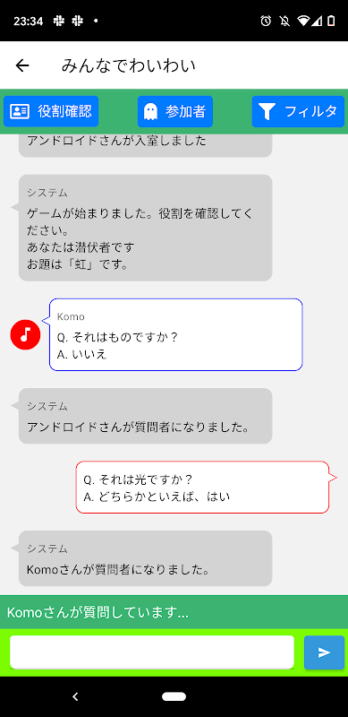 プレイヤーの中に、質問に回答している潜伏者が含まれています。