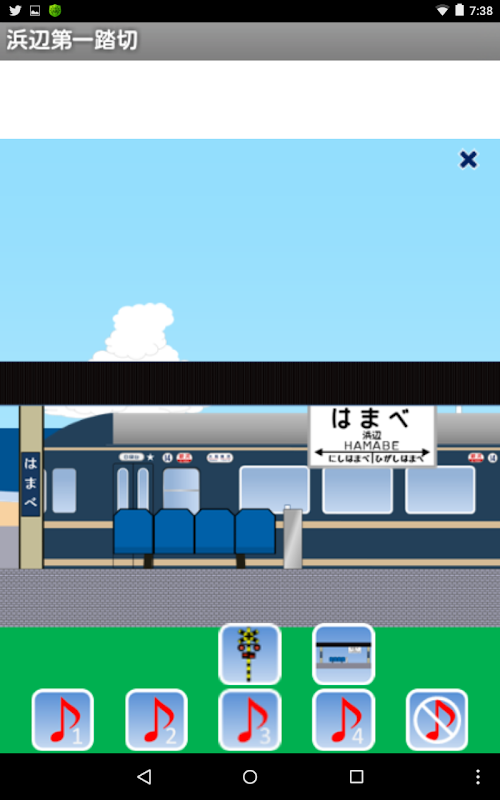 Diese Anwendung basiert auf dem Bild eines Bahnübergangs in Strandnähe im Spätsommer, wenn der Klang der Wellen ertönt. Verschiedene Züge fahren vorbei.