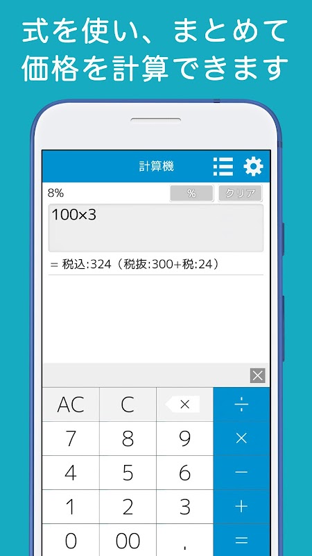 Sie können eine Formel wie 100+300 oder 100×3 eingeben, um den Betrag inklusive Steuern für mehrere Produkte gleichzeitig zu berechnen.