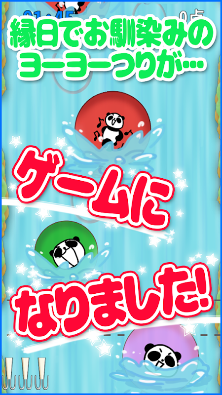 夏の風物詩。夜店・縁日・お祭り屋台の名物、水ヨーヨーが激流で流れてくる爆速的釣りゲームがここに誕生! 「ぱんだ建設」に続いて ぱんだ が出没中!