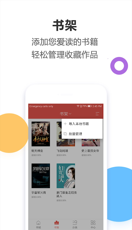 * 从本地书库(书城)获取电子书,加入书架