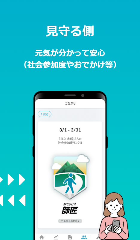 Verhindern Sie Gebrechlichkeit und Pflegebedürftigkeit, indem Sie Berichte über die Anzahl der Tage, an denen Sie unterwegs sind, und die Anzahl der Schritte, die Sie unternehmen, überwachen! Dies ist eine kostenlose und unterhaltsame Überwachungs-App von Hitachi.