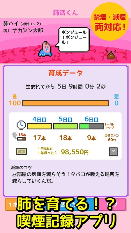 禁煙or減煙?喫煙記録ゲーム - 肺活くん 1.3