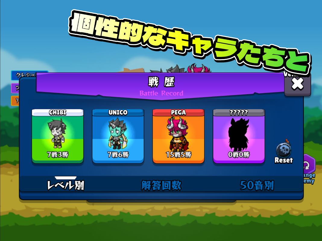 Sie können jetzt die Shiritori-Kampfhistorie des Spielers überprüfen, z. B. die Anzahl der Siege und Verluste nach feindlichem Charakter, die Anzahl der Antworten für jedes Pferd und die Liste der Rennpferde, die häufig mit 50 Tönen angezeigt werden.