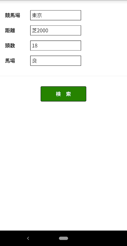 各項目(コース、距離、頭数、馬場)を設定して結果を表示できます。