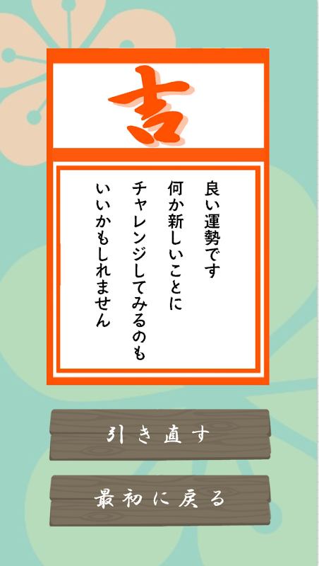 おみくじを引くをタッチするだけで結果がでる簡単なおみくじを引くことができます。