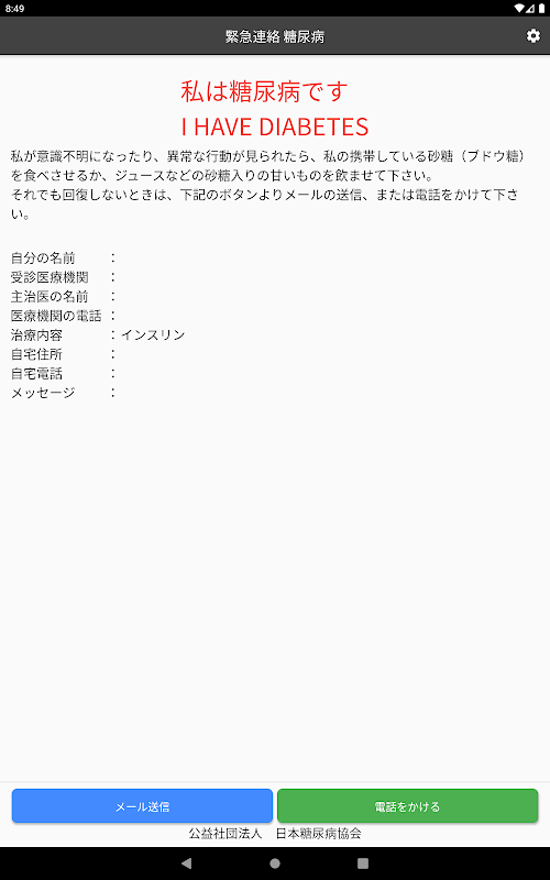 Mit APKPure können Sie 緊急連絡 糖尿病 APK einfach und sicher mit Signaturüberprüfung herunterladen.