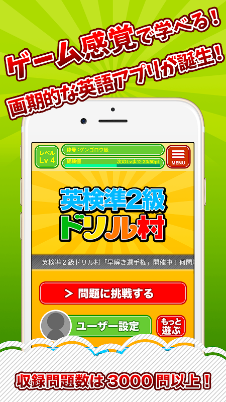英検準2級(英語検定準2級)に頻出の英単語をゲーム感覚で集中的に学べる画期的なアプリの登場です!最新の研究結果を元に、最も効率よく楽しく英単語を習得できます。