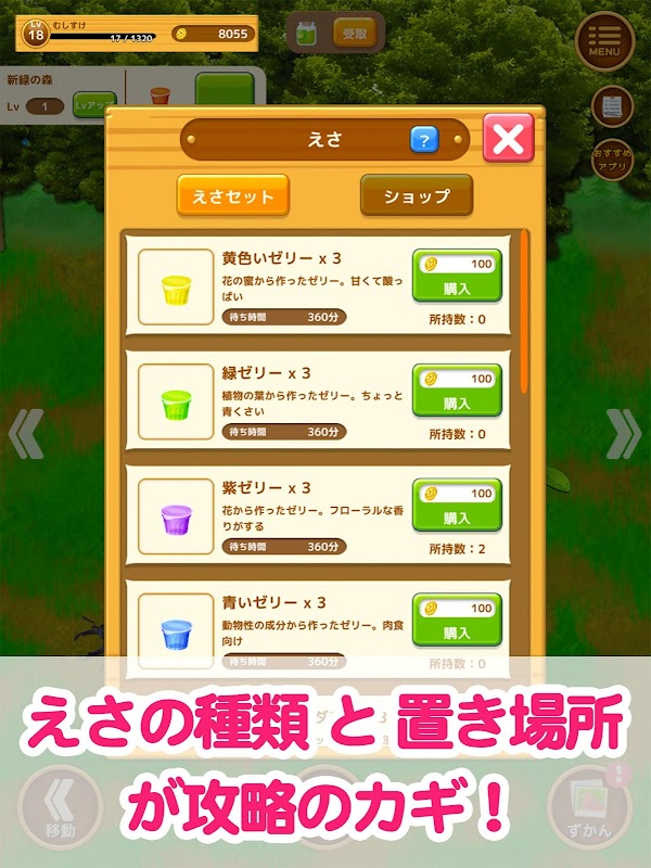 Denken Sie über die Art des Essens nach und wo es hingelegt werden soll, und treffen Sie Käfer und Hirschkäfer!