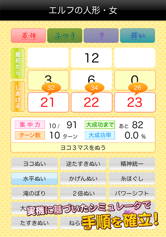 大成功作りをアシストするシミュレータ、自分で値を設定して使える計算機、すべてのさいほう装備・家具をカバーしたレシピ帳という3つのモードで、さいほうライフをトータルプロデュースいたします。