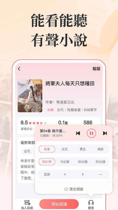 言情小說,愛情小說、穿越小說、戀愛總裁都市浪漫小說閱讀聽小說 1.1.0