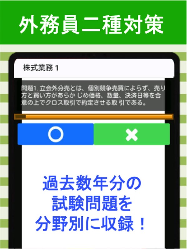 このアプリでは分野別に証券外務員二種の頻出過去問を網羅的に掲載しています。