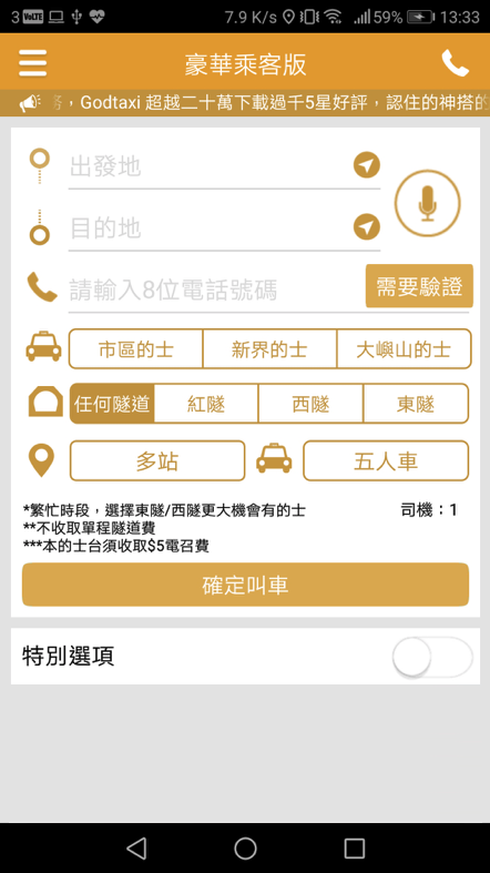 Diese App ist eine Hong Kong Taxi-App. Ich hoffe, dass diese App schnellen und bequemen Taxi-Service für Passagiere und Fahrer bieten kann, und unnötige Streitigkeiten zwischen Fahrgästen und Fahrern reduzieren, wie die Abneigung, die Last zu akzeptieren, und den Anruf wegen Intimität nicht annehmen. .