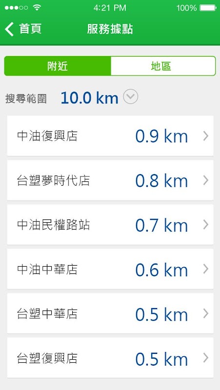 設定:提供使用者設定服務據點搜尋範圍及推播訊息開啟與關閉等功能參數設定。