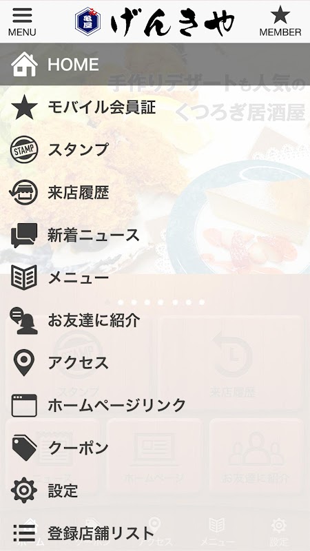 このアプリでは、居酒屋 げんきやの色々な情報やアプリユーザー限定のお得なサービスが手に入ります!