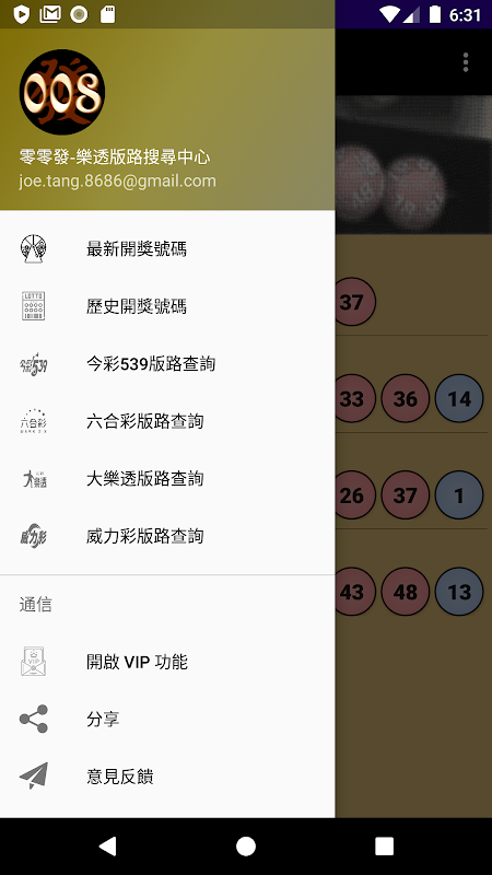 1. 提供今彩539、大樂透、威力彩與六合彩當期開獎獎號查詢