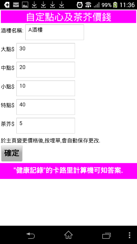 有沒有試過去茶樓飲茶時, 因為侍應出錯而導致被多收了錢的情況呢? 有了這個工具便可以更清楚及快捷地計算出總數. 更可同時計算出多人夾份時所須付款數目.
