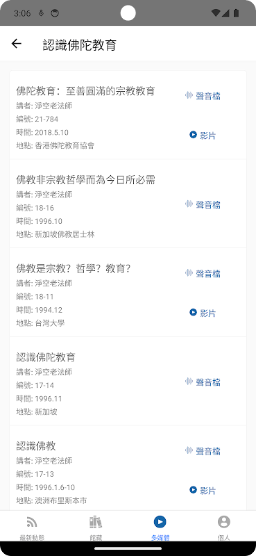 3. Multimedia – Wählen Sie frei sechs Arten von Buddha-Namen aus und nutzen Sie Ihr Mobiltelefon als Buddha-Namensmaschine; schauen Sie sich Schriften und Lehren zu verschiedenen Themen im Ton- oder Videomodus an.