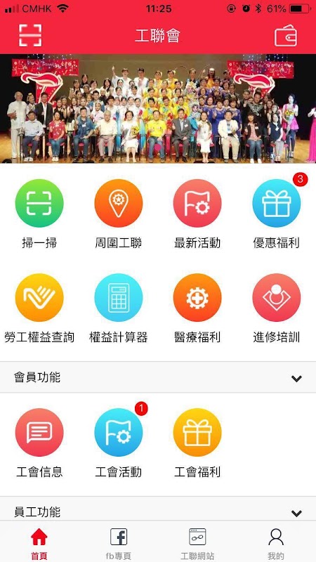 「會員專區」──會員從專區緊貼工會活動及最新行業發展資訊,部份活動更可透過此APP報名留位,快捷方便;