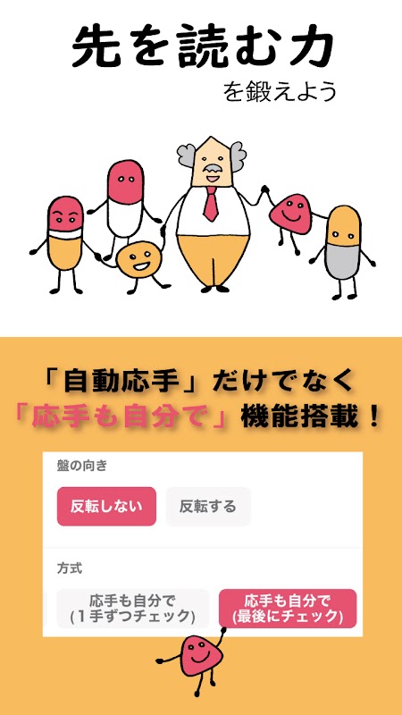 ・ Eine Shogi-Übungs-App, mit der Sie Probleme wie Tsume Shogi und Tesuji angehen können, die mit Techniken gefüllt sind, die zur Stärkung des Shogi erforderlich sind.