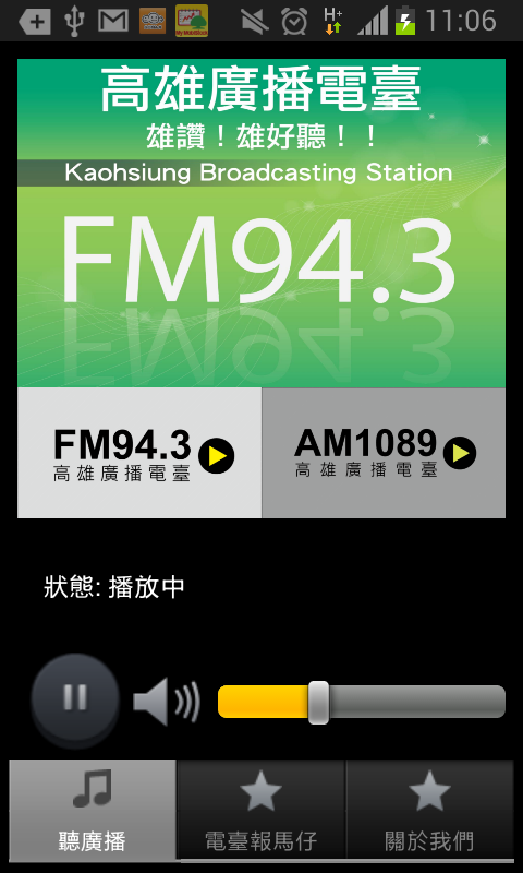 高雄廣播電臺AM1089成立於民國71年6月28日,FM94.3於民國80年開播,涵蓋恆春半島至嘉南平原,包括高雄、臺南及屏東,是南臺灣公共服務資訊專業電臺。