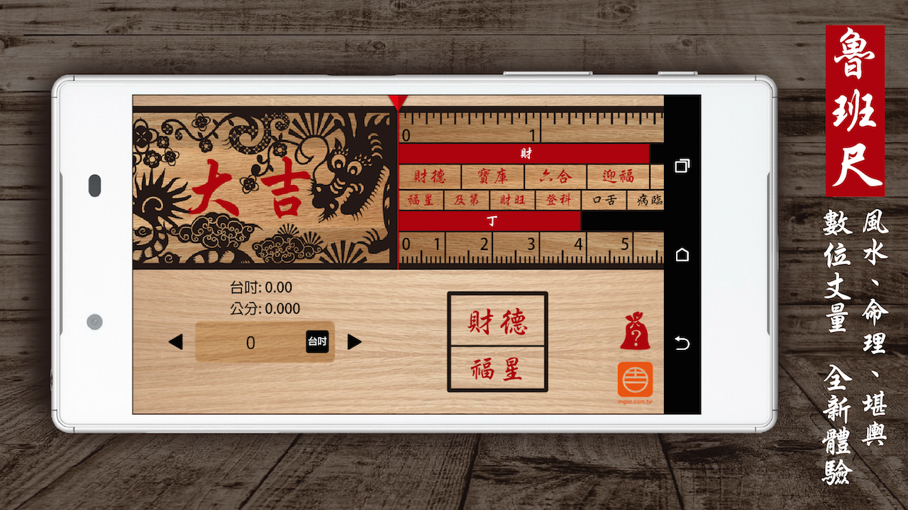 "Luban Herrscher" auch bekannt als "Lu-like Füße", allgemein bekannt als "text-Meter." 1.4142 Meter lang, mit Krankheit und Tod bitter fünfWortBasis, aufgeteilt in acht Zellen, die jeweils mit Glück, um, sind: Geld, krank, verläßt, Gerechtigkeit, Offizier, Raub, Körperverletzung, Ben. Feng Shui Lineal ist in obere und untere zwei Teile geteilt: die obere Hälfte ist der Text Meter: eine Villa, Tabletten, die Größe des Buddha. Ding Lan Füße untere Hälfte: gebrauchter Amityville Horror, Ahnenschrein.