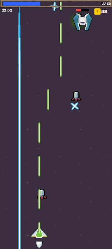 Beim Zerstören eines Meteoriten wird Energie aufgeladen und das Flugzeug kann durch Auswahl einer von drei zufälligen Fähigkeiten verstärkt werden.
