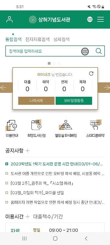 Konkuk Universitätsbibliothek Suche Bibliotheksservice-Informationen, Ankündigungen, wie beispielsweise ein Programm zur Bibliothek Dienstleistungen.